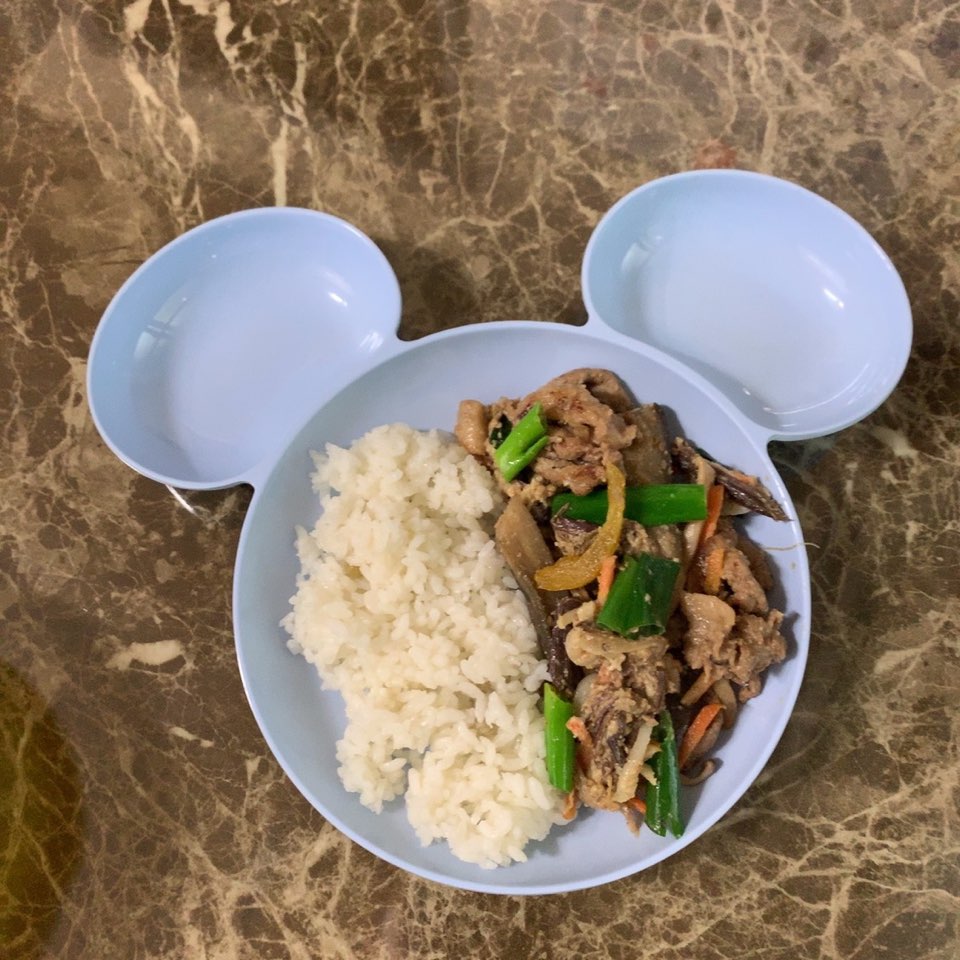 점심은 불고기와 고사리나물,가지볶음!(후라이팬에 다 넣고 데워먹었어요)