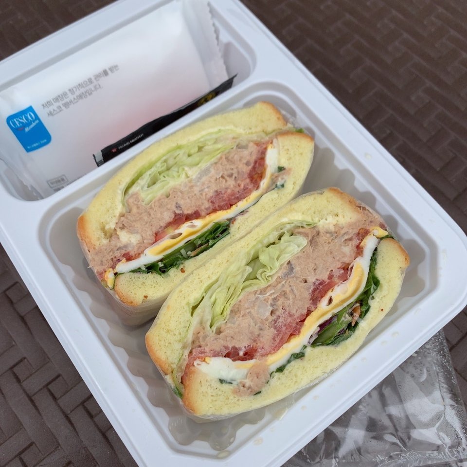 점심은 참치마요뚠뚠샌드위치에요^^