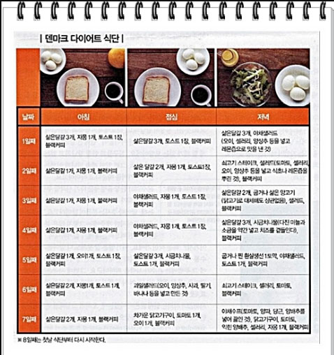 (덴마크 다이어트 식단은 위의 사진을 참고해주세요.