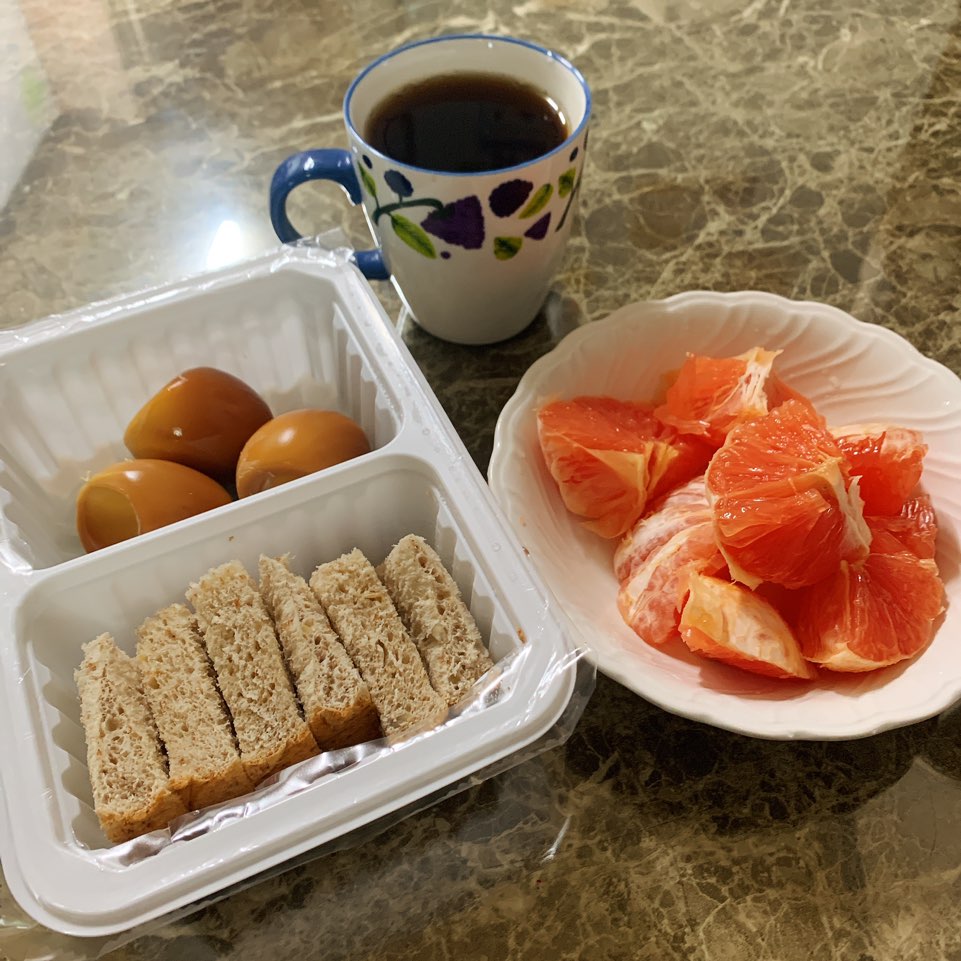 자몽 1개 + 구운 계란 3개 + 잡곡 호밀빵 1쪽 + 블랙커피