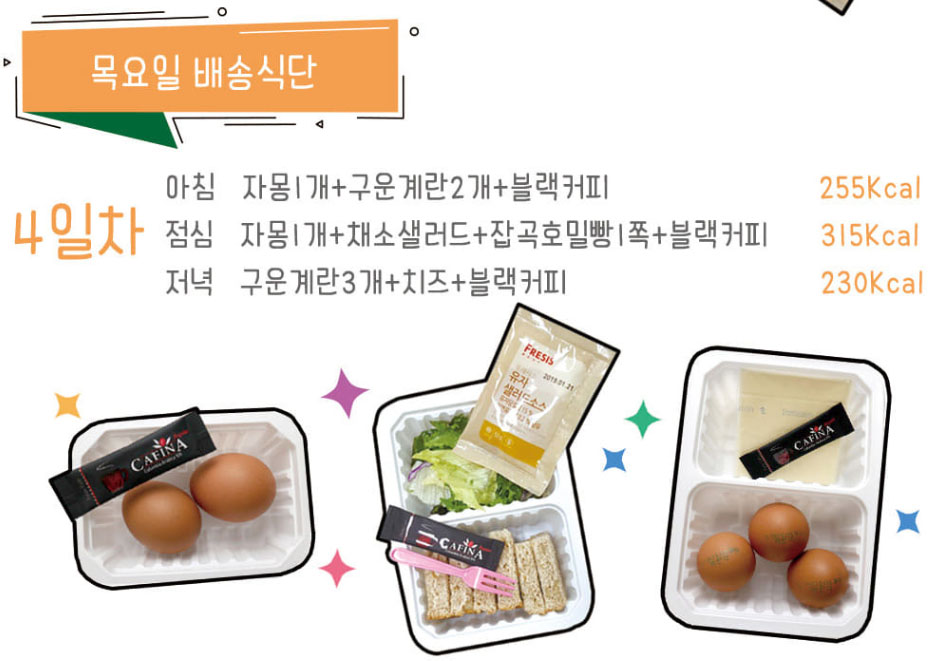 이렇게 4일 차도 정해진 식단 외에 아무것도 먹지 않고 정석대로 지켜줬습니다.