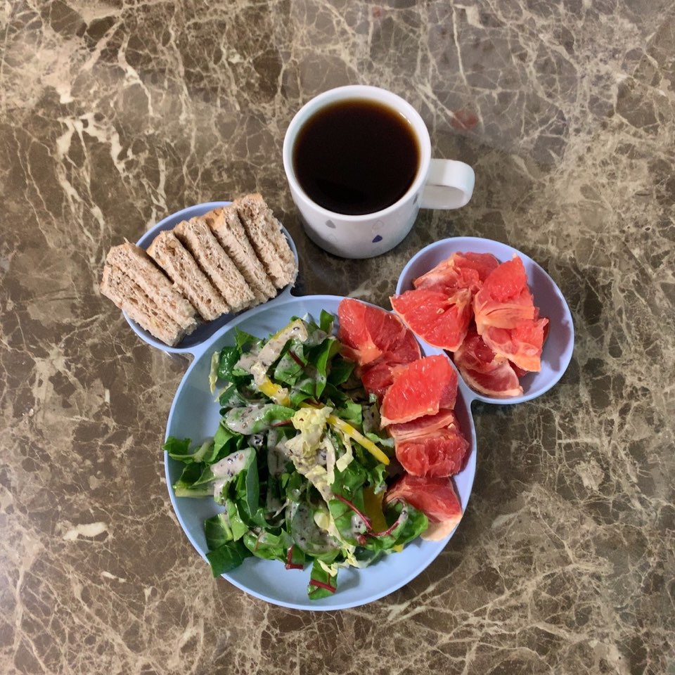 자몽 1개+채소 샐러드+잡곡 호밀빵 1쪽+블랙커피