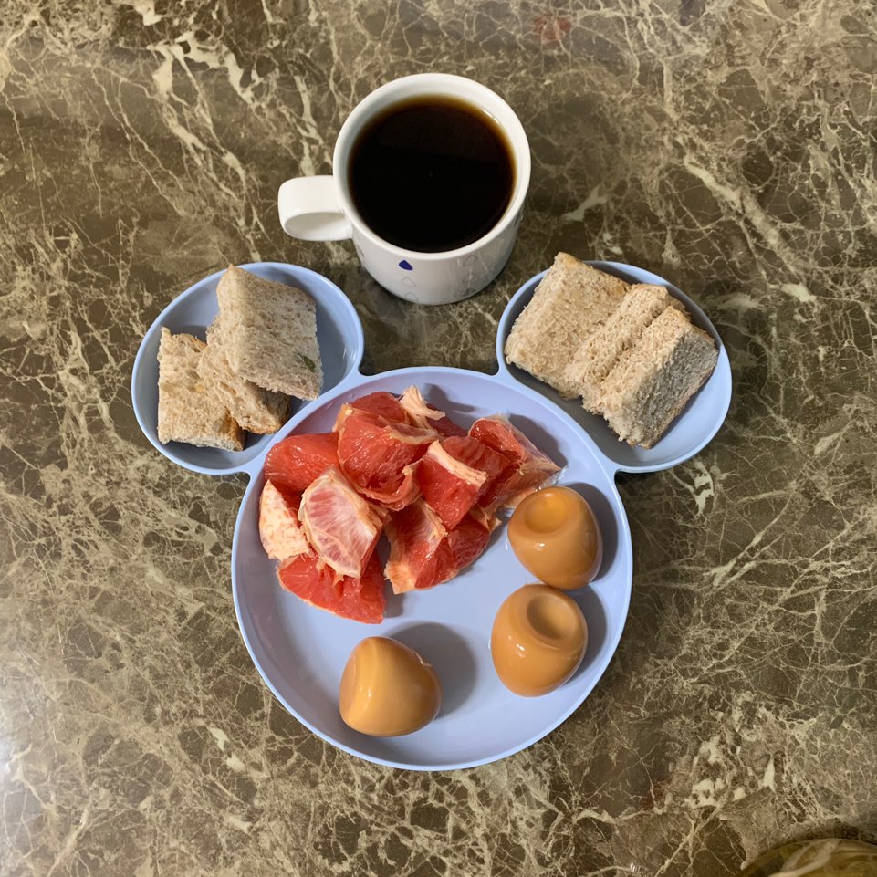 자몽 1개+구운 계란 3개+잡곡 호밀빵 1쪽+블랙커피